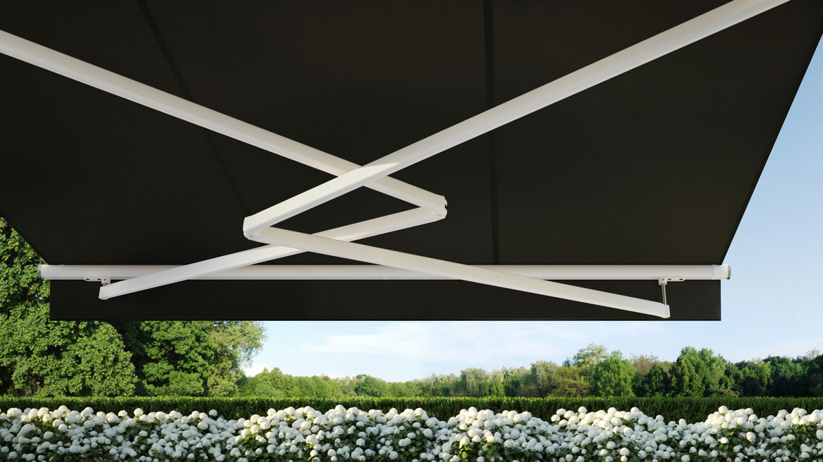 In schmalen Nischen, auf engen Terrassen oder Balkonen bringt markilux stretch die nötige Flexibilität: Mit zwei sich überkreuzenden Armen fahren auch Markisen mit geringer Breite weit heraus.